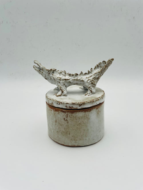 « Les pièces de Margot Dutilleul témoignent d’un langage singulier, où la terre devient le support d’un monde à la fois archaïque et contemporain(…) Il ne s’agit pas de reproduire, mais d’inventer des figures qui réenchantent la matière. Il y a une inventivité constante, mais aussi une profonde sincérité du geste. Margot Dutilleul ne modèle pas des objets mais invente des mondes. »